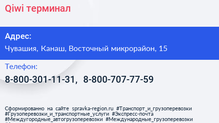 Qiwi, терминал по адресу Чувашия, Канаш, Восточный микрорайон, 15 в дальнейшем Организация, размещена в следующих категориях: