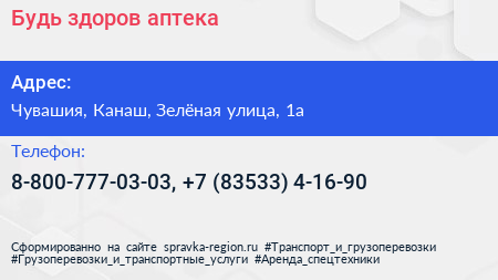 Будь здоров, аптека по адресу Чувашия, Канаш, Зелёная улица, 1а в дальнейшем Организация, размещена в следующих категориях: