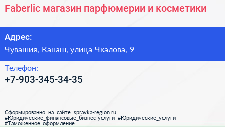 Faberlic, магазин парфюмерии и косметики по адресу Чувашия, Канаш, улица Чкалова, 9 в дальнейшем Организация, размещена в следующих категориях:
