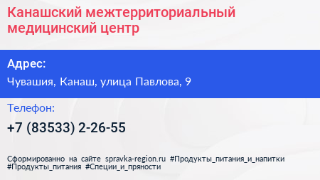Канашский межтерриториальный медицинский центр по адресу Чувашия, Канаш, улица Павлова, 9 в дальнейшем Организация, размещена в следующих категориях: