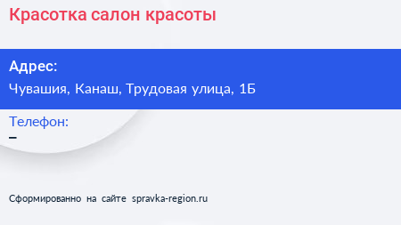 Красотка, салон красоты по адресу Чувашия, Канаш, Трудовая улица, 1Б в дальнейшем Организация, размещена в следующих категориях: