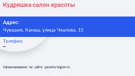 Кудряшка, салон красоты по адресу Чувашия, Канаш, улица Чкалова, 15 в дальнейшем Организация, размещена в следующих категориях:
