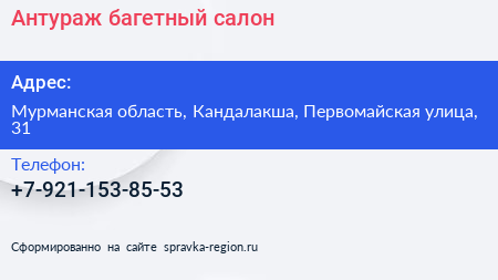 Антураж, багетный салон по адресу Мурманская область, Кандалакша, Первомайская улица, 31 в дальнейшем Организация, размещена в следующих категориях: