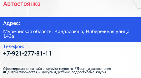 Автостоянка по адресу Мурманская область, Кандалакша, Набережная улица, 143а в дальнейшем Организация, размещена в следующих категориях:
