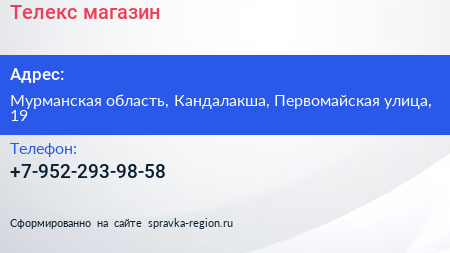 Телекс, магазин по адресу Мурманская область, Кандалакша, Первомайская улица, 19 в дальнейшем Организация, размещена в следующих категориях: