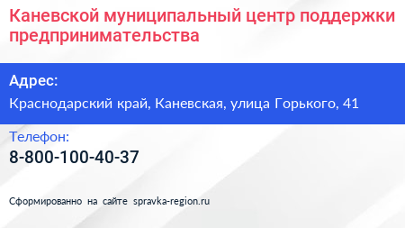 Каневской муниципальный центр поддержки предпринимательства по адресу Краснодарский край, Каневская, улица Горького, 41 в дальнейшем Организация, размещена в следующих категориях: