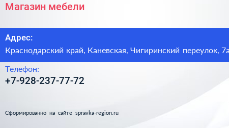 Магазин мебели по адресу Краснодарский край, Каневская, Чигиринский переулок, 7а в дальнейшем Организация, размещена в следующих категориях: