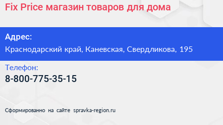 Fix Price, магазин товаров для дома по адресу Краснодарский край, Каневская, Свердликова, 195 в дальнейшем Организация, размещена в следующих категориях: