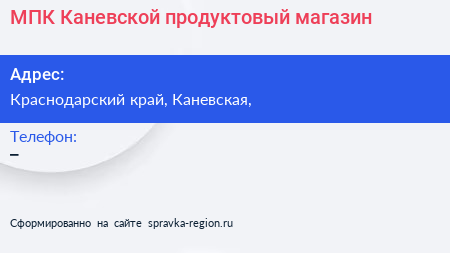 МПК Каневской, продуктовый магазин по адресу Краснодарский край, Каневская, в дальнейшем Организация, размещена в следующих категориях: