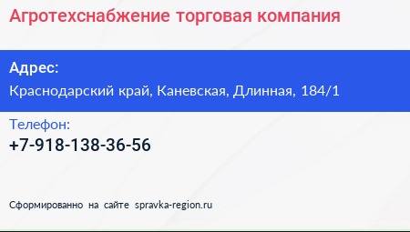 Агротехснабжение, торговая компания по адресу Краснодарский край, Каневская, Длинная, 184/1 в дальнейшем Организация, размещена в следующих категориях: