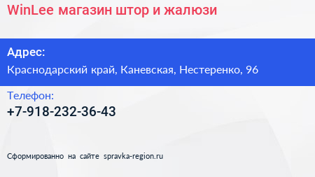 WinLee, магазин штор и жалюзи по адресу Краснодарский край, Каневская, Нестеренко, 96 в дальнейшем Организация, размещена в следующих категориях: