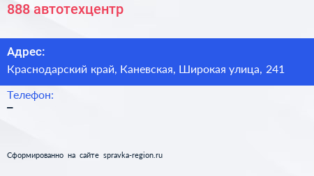 888, автотехцентр по адресу Краснодарский край, Каневская, Широкая улица, 241 в дальнейшем Организация, размещена в следующих категориях: