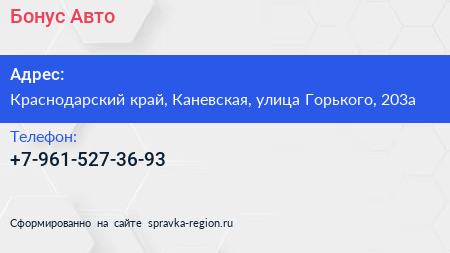 Бонус-Авто по адресу Краснодарский край, Каневская, улица Горького, 203а в дальнейшем Организация, размещена в следующих категориях: