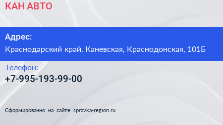 КАН-АВТО по адресу Краснодарский край, Каневская, Краснодонская, 101Б в дальнейшем Организация, размещена в следующих категориях: