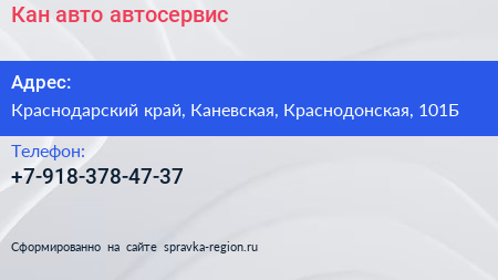 Кан-авто, автосервис по адресу Краснодарский край, Каневская, Краснодонская, 101Б в дальнейшем Организация, размещена в следующих категориях: