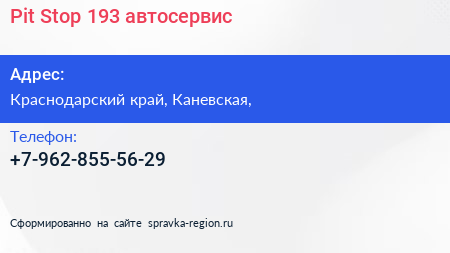 Pit Stop 193, автосервис по адресу Краснодарский край, Каневская, в дальнейшем Организация, размещена в следующих категориях: