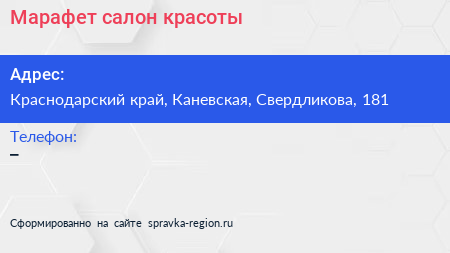 Марафет, салон красоты по адресу Краснодарский край, Каневская, Свердликова, 181 в дальнейшем Организация, размещена в следующих категориях: