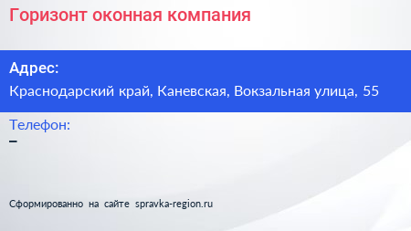 Горизонт, оконная компания по адресу Краснодарский край, Каневская, Вокзальная улица, 55 в дальнейшем Организация, размещена в следующих категориях: