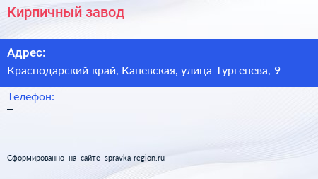 Кирпичный завод по адресу Краснодарский край, Каневская, улица Тургенева, 9 в дальнейшем Организация, размещена в следующих категориях: