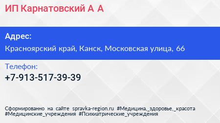 ИП Карнатовский А.А. по адресу Красноярский край, Канск, Московская улица, 66 в дальнейшем Организация, размещена в следующих категориях: