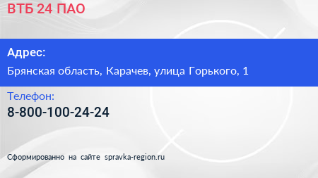 ВТБ 24, ПАО по адресу Брянская область, Карачев, улица Горького, 1 в дальнейшем Организация, размещена в следующих категориях: