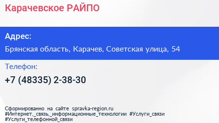 Карачевское РАЙПО по адресу Брянская область, Карачев, Советская улица, 54 в дальнейшем Организация, размещена в следующих категориях: