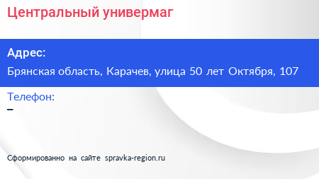 Центральный универмаг по адресу Брянская область, Карачев, улица 50 лет Октября, 107 в дальнейшем Организация, размещена в следующих категориях: