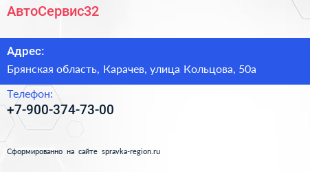 АвтоСервис32 по адресу Брянская область, Карачев, улица Кольцова, 50а в дальнейшем Организация, размещена в следующих категориях: