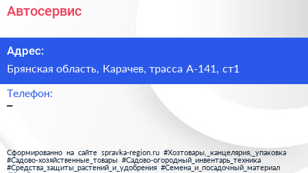 Автосервис по адресу Брянская область, Карачев, трасса А-141, ст1 в дальнейшем Организация, размещена в следующих категориях: