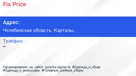 Fix Price по адресу Челябинская область, Карталы, в дальнейшем Организация, размещена в следующих категориях: