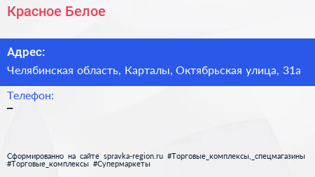 Красное & Белое по адресу Челябинская область, Карталы, Октябрьская улица, 31а в дальнейшем Организация, размещена в следующих категориях: