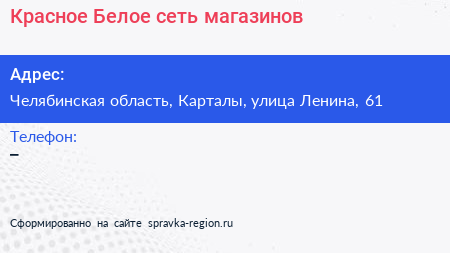 Красное & Белое, сеть магазинов по адресу Челябинская область, Карталы, улица Ленина, 61 в дальнейшем Организация, размещена в следующих категориях: