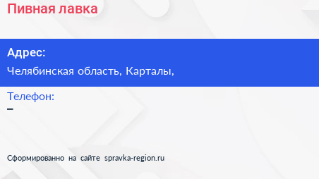 Пивная лавка по адресу Челябинская область, Карталы, в дальнейшем Организация, размещена в следующих категориях: