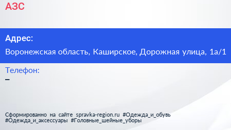 АЗС по адресу Воронежская область, Каширское, Дорожная улица, 1а/1 в дальнейшем Организация, размещена в следующих категориях: