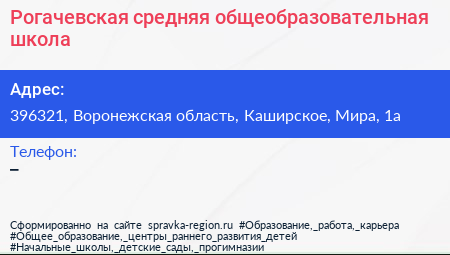 Рогачевская средняя общеобразовательная школа по адресу 396321, Воронежская область, Каширское, Мира, 1а в дальнейшем Организация, размещена в следующих категориях: