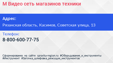 М.Видео, сеть магазинов техники по адресу Рязанская область, Касимов, Советская улица, 13 в дальнейшем Организация, размещена в следующих категориях: