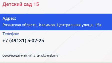 Детский сад №15 по адресу Рязанская область, Касимов, Центральная улица, 15а в дальнейшем Организация, размещена в следующих категориях: