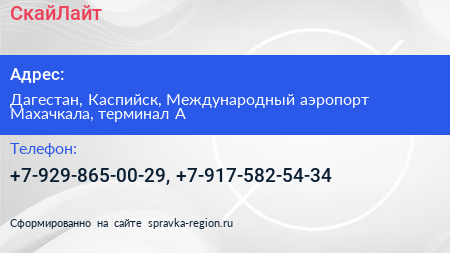 СкайЛайт по адресу Дагестан, Каспийск, Международный аэропорт Махачкала, терминал А в дальнейшем Организация, размещена в следующих категориях: