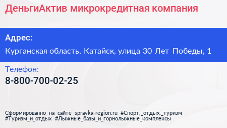 ДеньгиАктив, микрокредитная компания по адресу Курганская область, Катайск, улица 30 Лет Победы, 1 в дальнейшем Организация, размещена в следующих категориях: