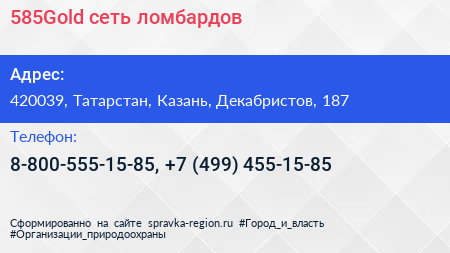 585Gold, сеть ломбардов по адресу 420039, Татарстан, Казань, Декабристов, 187 в дальнейшем Организация, размещена в следующих категориях: