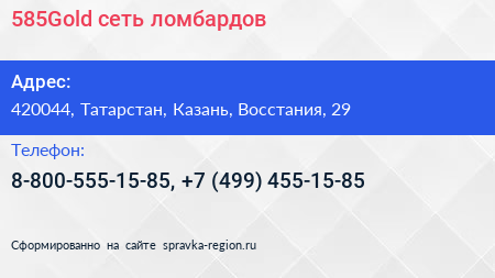 585Gold, сеть ломбардов по адресу 420044, Татарстан, Казань, Восстания, 29 в дальнейшем Организация, размещена в следующих категориях:
