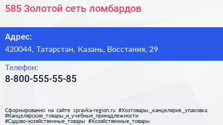 585*Золотой, сеть ломбардов по адресу 420044, Татарстан, Казань, Восстания, 29 в дальнейшем Организация, размещена в следующих категориях: