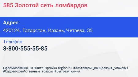 585*Золотой, сеть ломбардов по адресу 420124, Татарстан, Казань, Четаева, 35 в дальнейшем Организация, размещена в следующих категориях: