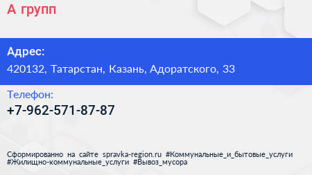 А-групп по адресу 420132, Татарстан, Казань, Адоратского, 33 в дальнейшем Организация, размещена в следующих категориях: