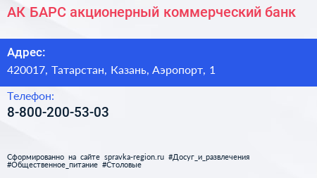 АК БАРС, акционерный коммерческий банк по адресу 420017, Татарстан, Казань, Аэропорт, 1 в дальнейшем Организация, размещена в следующих категориях: