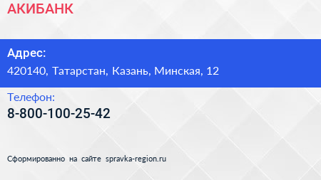 АКИБАНК по адресу 420140, Татарстан, Казань, Минская, 12 в дальнейшем Организация, размещена в следующих категориях:
