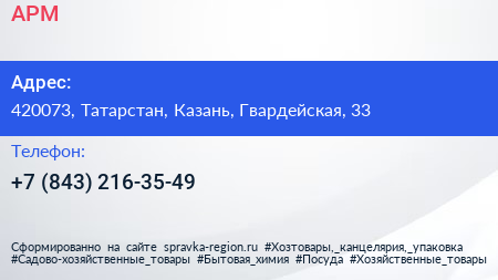 АРМ по адресу 420073, Татарстан, Казань, Гвардейская, 33 в дальнейшем Организация, размещена в следующих категориях: