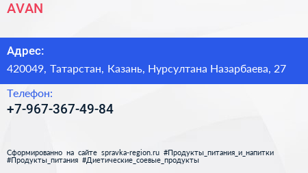 AVAN по адресу 420049, Татарстан, Казань, Нурсултана Назарбаева, 27 в дальнейшем Организация, размещена в следующих категориях: