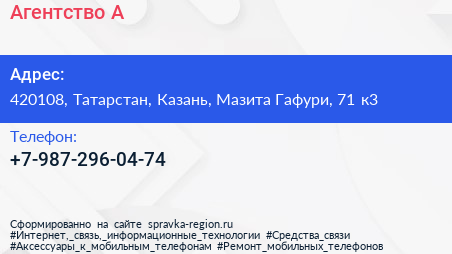 Агентство А++ по адресу 420108, Татарстан, Казань, Мазита Гафури, 71 к3 в дальнейшем Организация, размещена в следующих категориях: