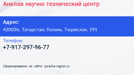 Анклав, научно-технический центр по адресу 420036, Татарстан, Казань, Тэцевская, 191 в дальнейшем Организация, размещена в следующих категориях: